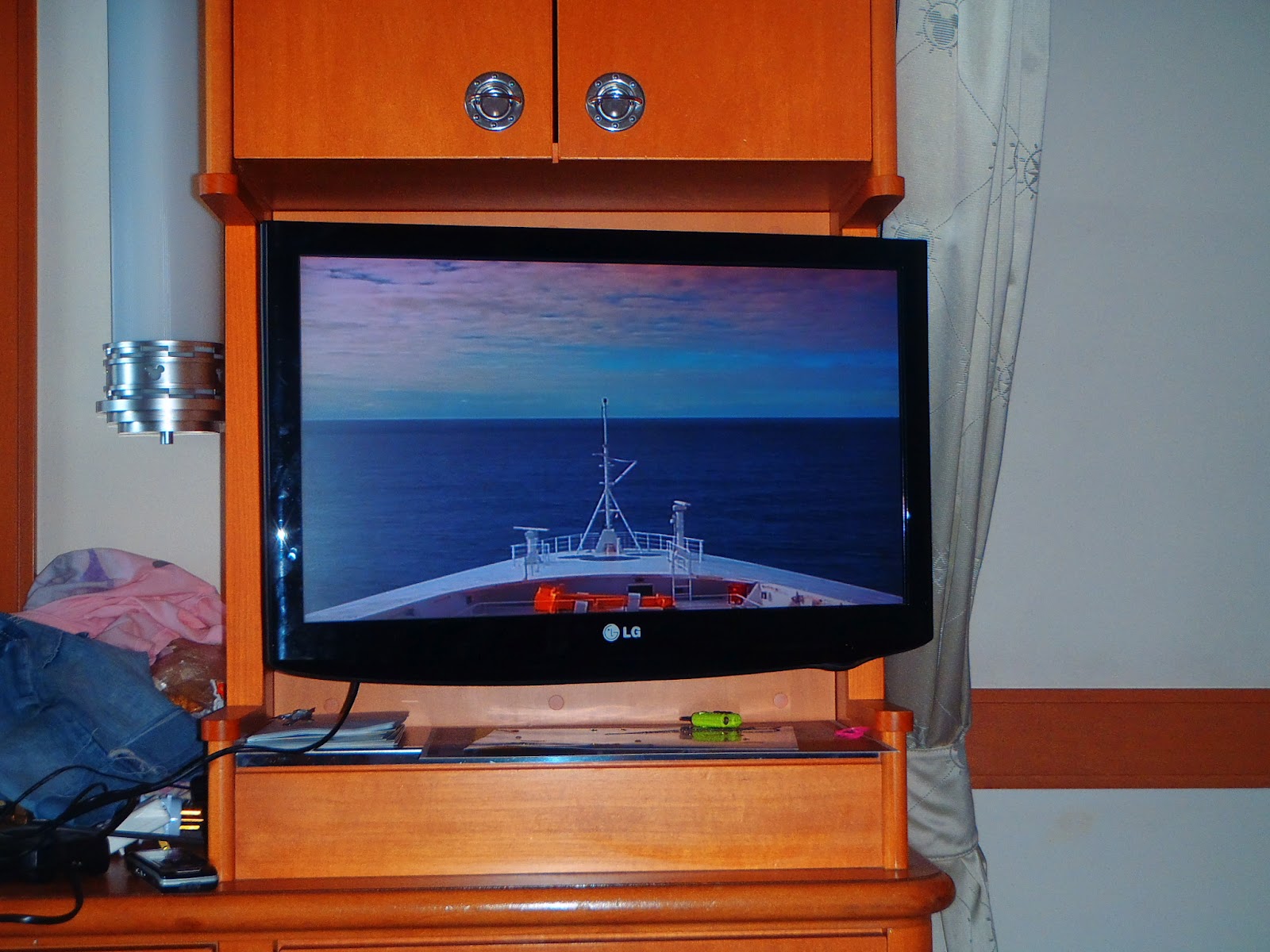 Some people in the inside cabins leave their tv turned on to this channel all night so that they can use the light from the dawn to wake them up - it's kind of like having a porthole view but from inside!